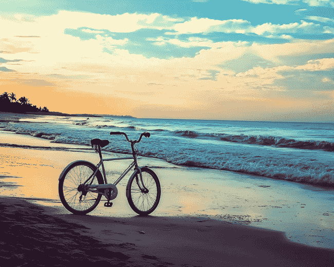 Benefits of Riding a Bicycle by the Seaside Diamond Painting Artwork